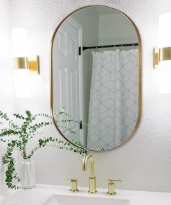 - ELEGANT DESIGN FOR NARROW SPACES: Our gold oval mirror 24×36’’ is perfect for limited spaces thanks to its sleek and simple silhouette. Its brushed gold frame adds a touch of luxury to any room, and the brass color sets it apart from other champagne-colored options