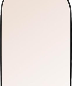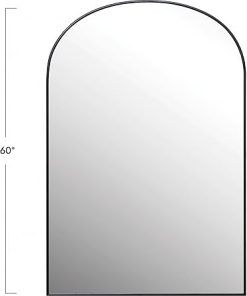 - A modern wall mirror that showcases an arched silhouette and a sleek metal frame