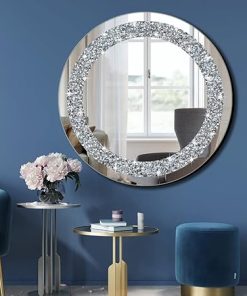 - Product size: 20x20x1 inch. Round frameless design with Sparkle Twinkle Bling Crystal Crush Diamond. Wall decorative mirror. Classic design sophisticated, modern and pretty. Exceptional quality right amount of glitz.