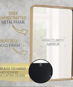 - BEAUTIFULLY HANDCRAFTED – Our Rustic Gold Mirror for wall hanging is handcrafted with care and attention to detail and design. We use high quality metals and mirror materials to guarantee the sturdiness and consistent aesthetic beauty of the design. Our mirrors are silver-backed, presenting a beautiful reflection every time. The finish really stands out, making any wall look incredible!