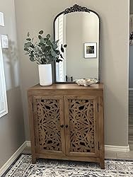 - 𝐎𝐫𝐧𝐚𝐭𝐞 𝐌𝐢𝐫𝐫𝐨𝐫 – Antique style embodied in its ornate, baroque-inspired and adorned with a stylish wood adornment on the top in distressed finish adding a touch of vintage-inspired charm to your decor.